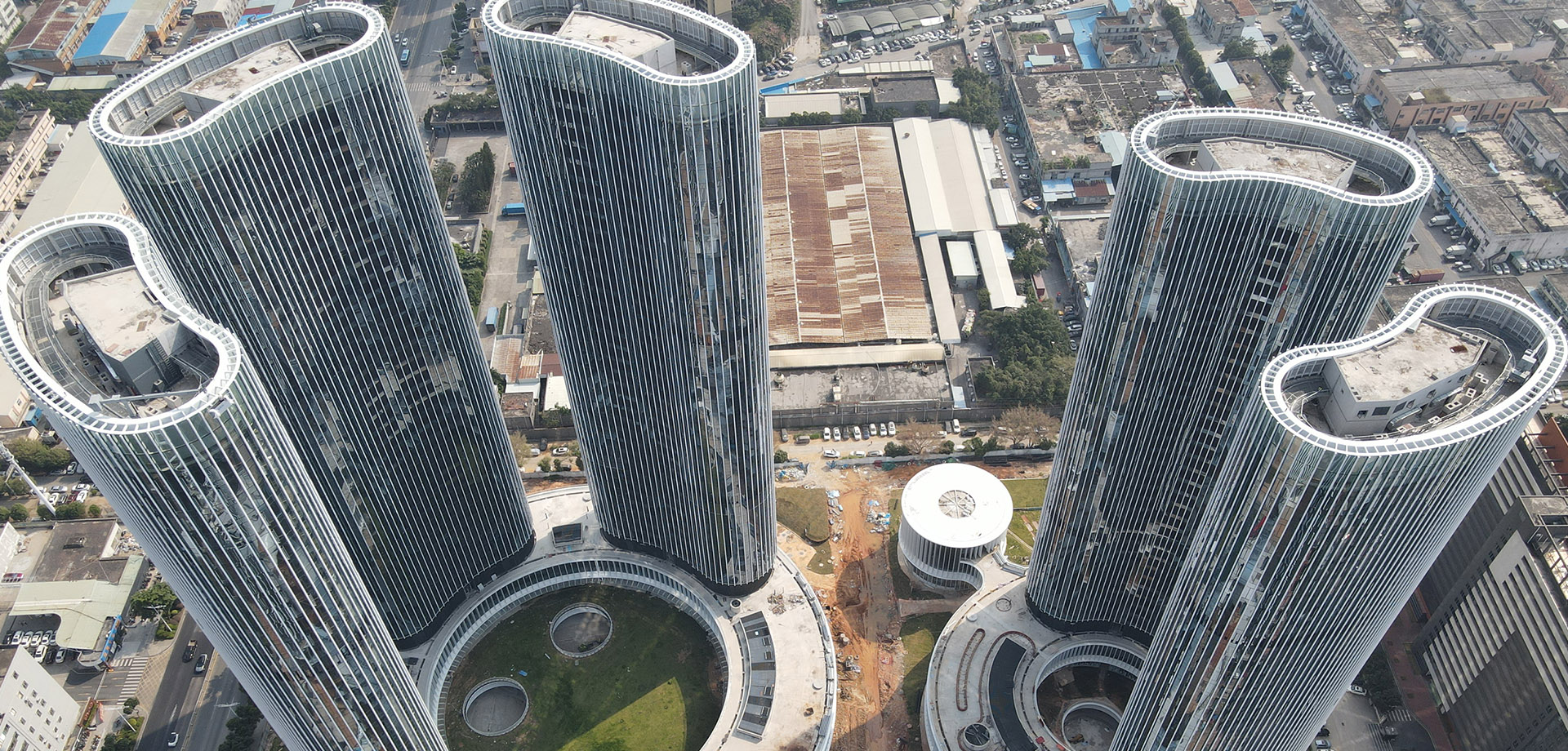幕墻面積:約11.3萬m2 項目設計:美國KPF建筑事務所 幕墻類型:框架式玻璃幕墻、弧形鋁板幕墻系統、鋁合金格柵系統等