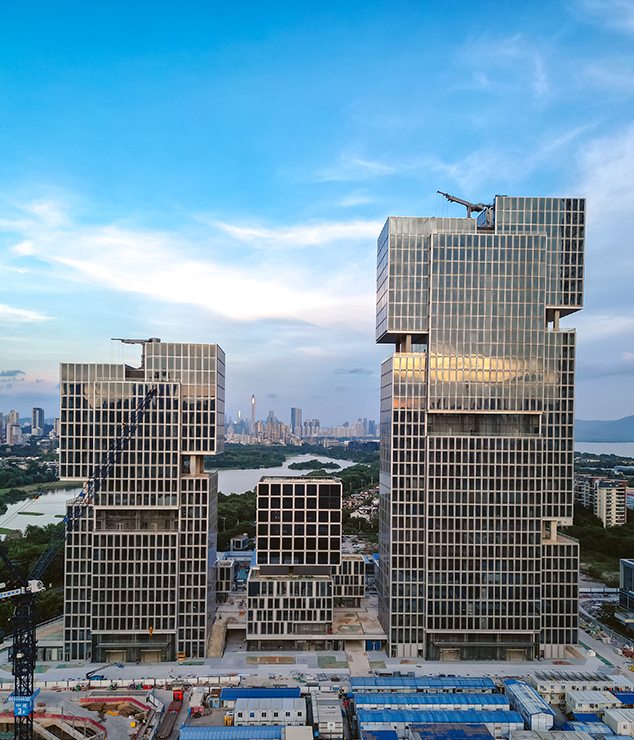 建筑高度:A塔156m(32層),B塔107m(21層) 幕墻面積:7.2萬m2 項目設(shè)計:德國gmp建筑事務(wù)所 幕墻類型:4米*10米超大單元式玻璃幕墻、框架幕墻系統(tǒng)等