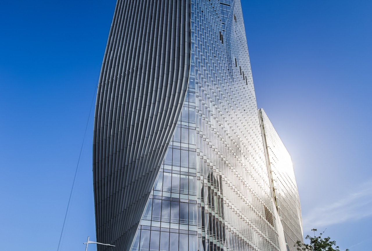 建筑高度:北塔樓218米,南塔樓116米 幕墻面積:80000㎡ 項(xiàng)目設(shè)計(jì):丹麥BIG建筑事物所 幕墻類型:單元式鋸齒玻璃幕墻,單元式鋸齒波紋鋁板幕墻