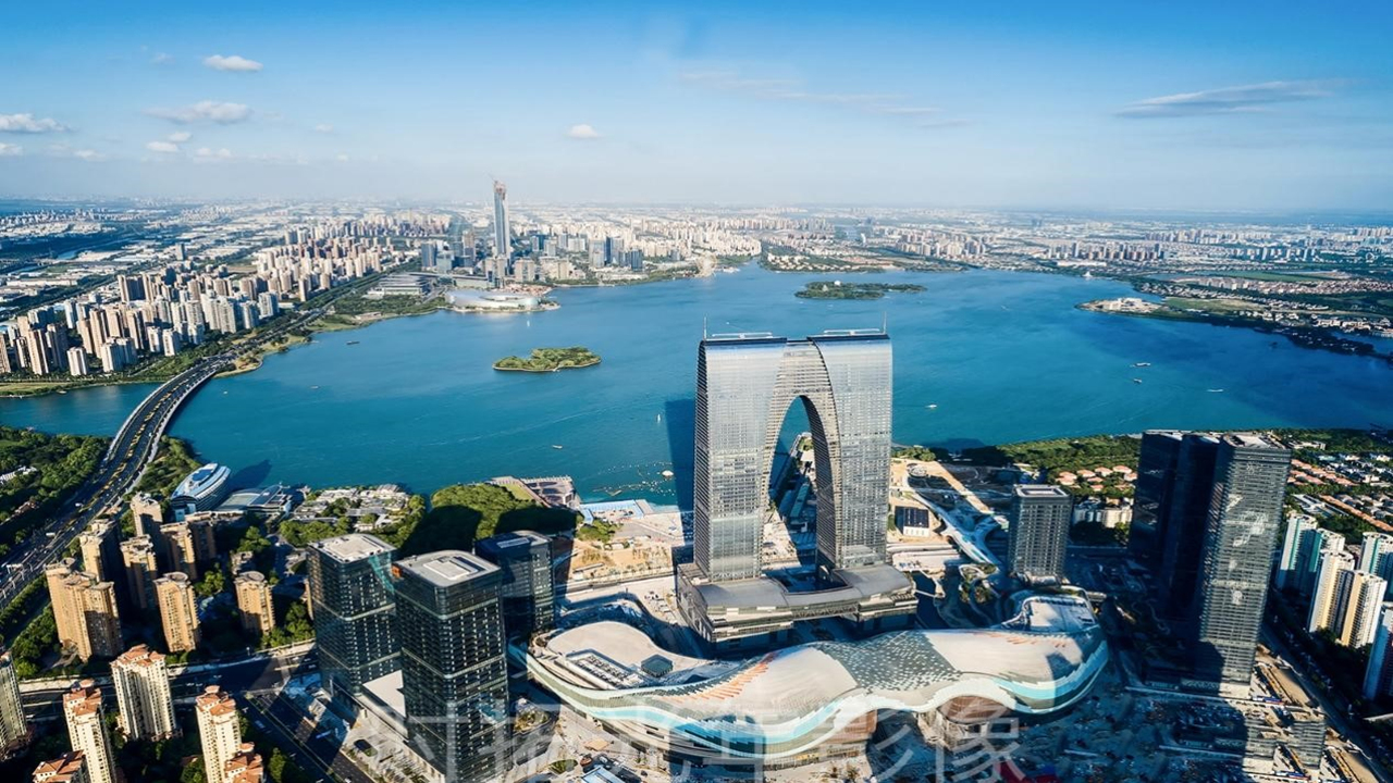 蘇州中心廣場項(xiàng)目位于蘇州工業(yè)園區(qū)金雞湖西側(cè),毗鄰東方之門,居蘇州市域CBD核心位置,軌交1號線、6號線貫穿整個(gè)項(xiàng)目區(qū)域,整體占地21.1公頃,凈地面積13.9公頃,總建筑面積約182萬平方米,其中地上建筑面積130萬平方米、地下建筑面積52萬平方米。
