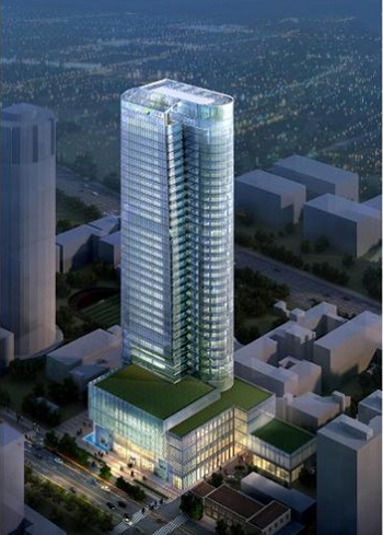 河北廊坊喜來登酒店項目位于廊坊潮白河,建筑面積3.9萬平方米,建筑高度81.85米,采用了玻璃幕墻、石材幕墻、鋁板幕墻、點式玻璃采光頂、點式玻璃雨篷、鋁合金百葉、不銹鋼地彈門等幕墻系統,本項目建成后將成為廊坊重要地標之一。