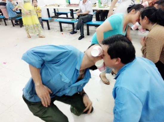 在員工享用美食與水果的同時(shí),當(dāng)晚現(xiàn)場(chǎng)進(jìn)行了踩氣球、夾傳瓜子與紙杯傳水三輪游戲,每個(gè)游戲都由壽星們自由組隊(duì)參與。第一個(gè)游戲“踩氣球”,兩人三足需要高度的協(xié)調(diào)與配合,為了躲避對(duì)手突襲,壽星們上躥下跳,左右擺動(dòng),動(dòng)作滑稽,惹得全場(chǎng)哄堂大笑;第二個(gè)游戲“夾傳瓜子”,大家爭(zhēng)分奪秒往下一位隊(duì)友手中輸送瓜子,在輸送的過(guò)程中如果瓜子不慎掉落只好重新開(kāi)始,在圍觀人員的助威吶喊聲中,壽星們加快步伐只為成功夾傳更多的瓜子;最后一個(gè)游戲“紙杯傳水”,要求選手們動(dòng)作謹(jǐn)慎且快,配合度高,為把紙杯的水倒入隊(duì)友的紙杯中時(shí)能夠滴水不漏,大家的傳輸POSE千奇百怪,笑料百出,現(xiàn)場(chǎng)一片歡聲笑語(yǔ)。