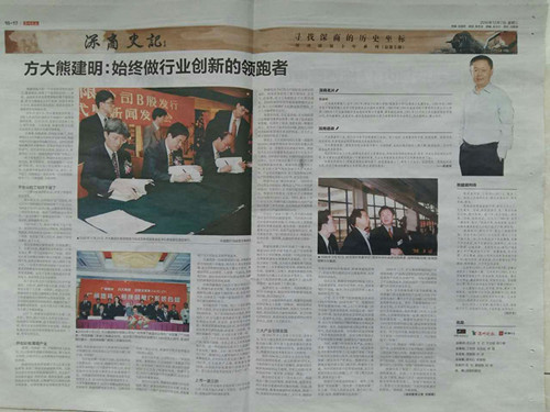 2016年12月7日,《深圳晚報》深商史記欄目以兩個整版超大篇幅報道方大集團股份有限公司董事長熊建明的風雨創業歷程,講述了熊建明董事長20多年來在建筑新材料、節能環保等行業領域的奮斗故事,記錄了他把方大集團從3萬元起家、市場為零的小公司,培育成領先國內同行、坐擁多項技術成就獎的領袖級企業的傳奇經歷,淋漓盡致地展現了熊建明董事長“敢為天下先”的奮斗姿態和樸實的創業情懷。