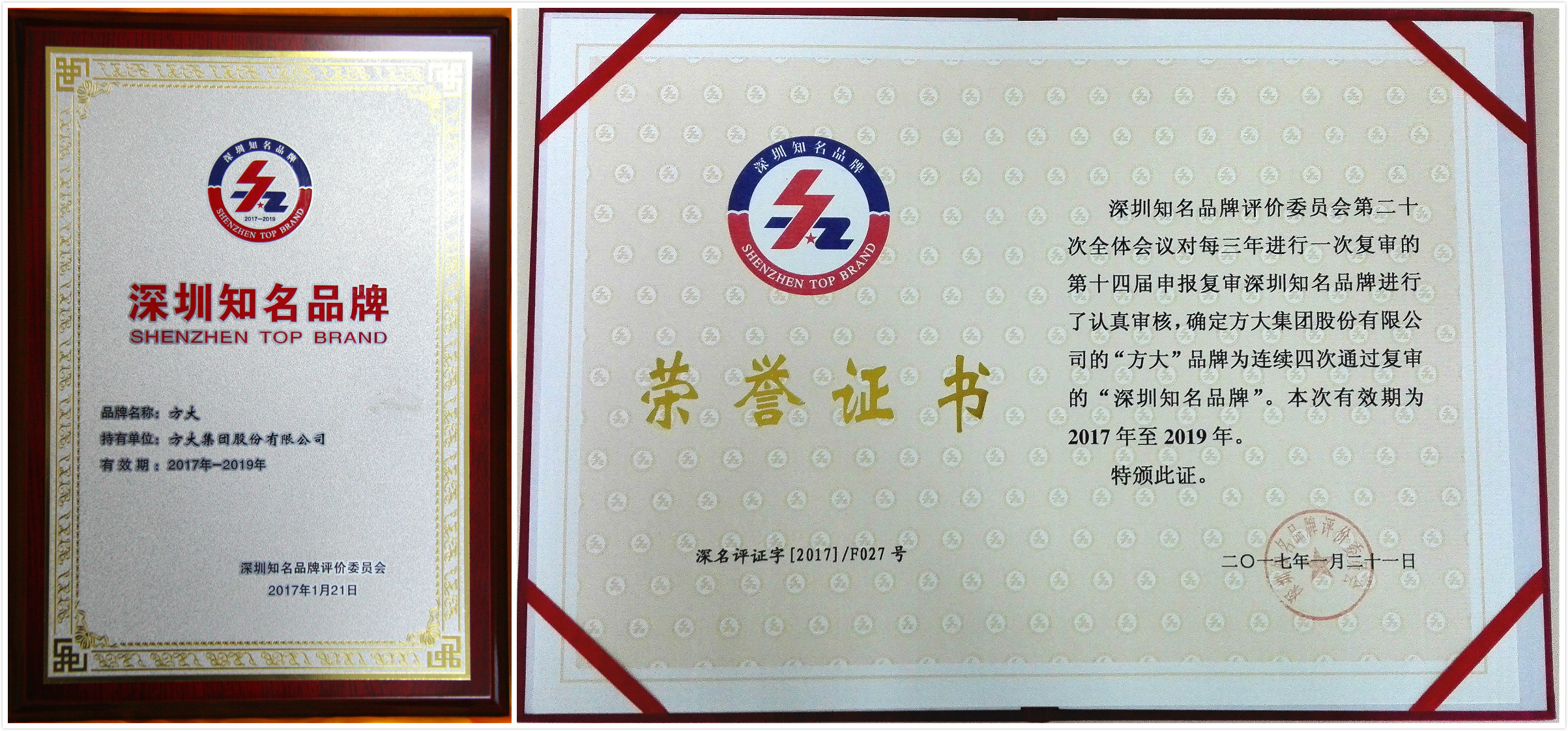 4月20日,在第十四屆深圳知名品牌成果發(fā)布會上,方大集團股份有限公司“方大”品牌被授予“深圳知名品牌”榮譽稱號,這是“方大”品牌連續(xù)第四次獲此殊榮。
