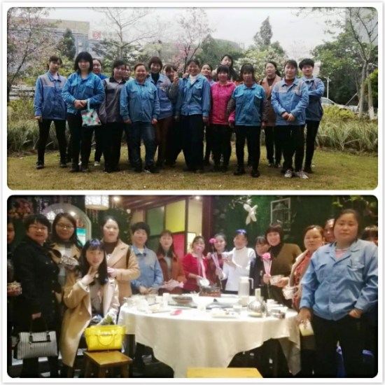 在東莞,因生產較忙,女員工們放棄休息,自愿在崗工作。東莞公司為女員工們準備的精致的禮物,晚上以一頓豐盛的晚餐慶祝此次“女神節”活動。