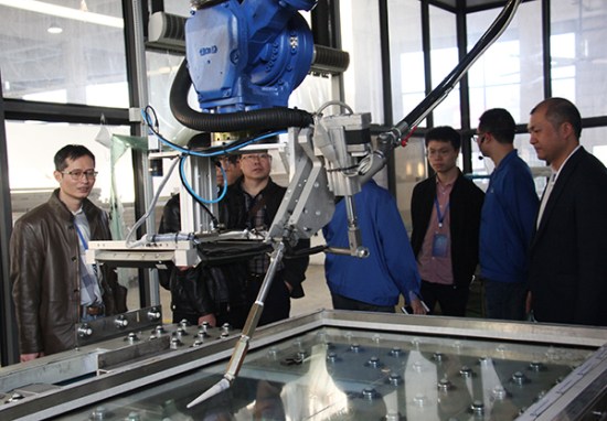 參觀東莞松山湖生產(chǎn)基地打膠機器人