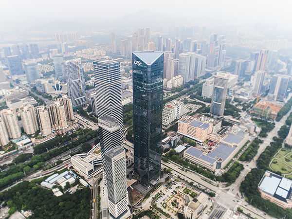 中國儲能大廈位于深圳市南山區科技園南區,是一座功能齊全、技術領先、風格獨特、綠色低碳的“智慧大廈”。該建筑高度300米,塔樓為單元式玻璃幕墻,四個轉角部位為對稱漸變的單元式圓弧幕墻。屋頂為開放式對稱斜坡屋頂框架幕墻,與主樓平滑相接,造型新穎別致。圓弧漸變單元玻璃板塊的加工運輸與吊裝是該項目的重難點,項目團隊嚴格檢測、控制鋁型材拉彎精度、中空鋼化玻璃彎弧精度、弧形單元框體和弧面玻璃的組裝精度,加以先進、合理的運輸吊裝方案實現了外立面平整、協調的效果。中國儲能大廈簡潔、明快及綠色的建筑風格體現了現代生活快節奏、簡約和實用,又富有朝氣的生活氣息。
