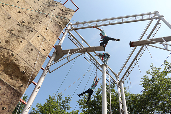 外部拓展訓練為期兩天,以提升畢業生綜合素質為目的,共設置信任背摔、篝火晚會、空中斷橋、畢業墻等多種拓展項目。畢業生們全身心參與其中,盡情揮灑汗水,在訓練中逐步敞開了心扉、融入了團隊,對“誠實、信任、合作、進取”的方大精神產生了深刻而形象的理解。